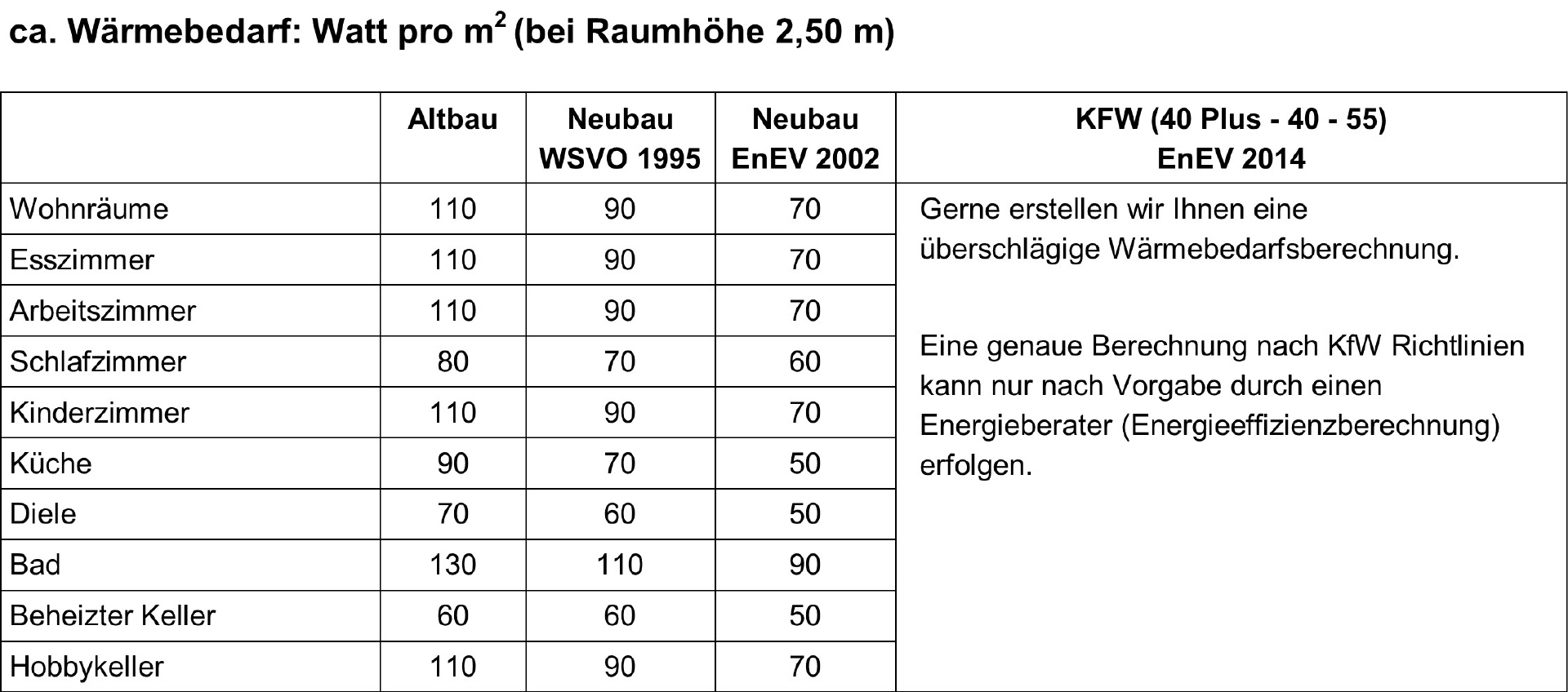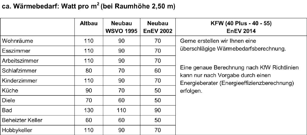 Sie sind hier: Startseite » Unsere Produke » Natursteinheizung » Technische Daten Technische Daten Errechnung des Wärmebedarfs