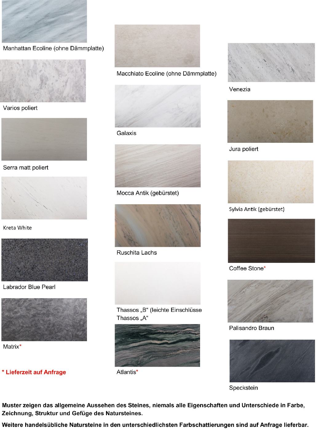 Sie sind hier: Startseite » Unsere Produke » Natursteinheizung » Natursteinsorten Natursteinsorten Unsere Natursteinsorten