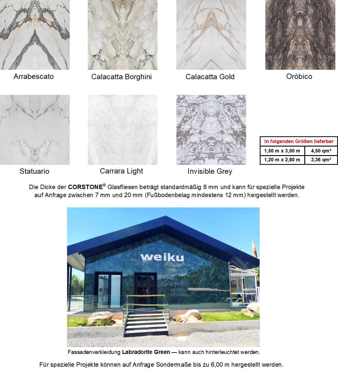 Sie sind hier: Startseite » Unsere Produke » VSG-Glas Wandverkleidung » Open Book Open Book CORSTONE® übertrifft Naturstein in vielen Aspekten. Open Book ist die einzigartige Zusammenführung zweier CORSTONE® – Paneelen zu einer Gesamtkomposition. Der permanente Spiegeleffekt beeindrucktallein durch seine Größe. kann nicht hinterleuchtet werden